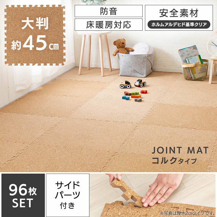 マット 12畳 コルクマット 45cm コルク ジョイントマット(45×45×0.8) 96枚セット ナチュラル COJTM-4508 送料無料 ラグ 床暖房対応 ジョイントマット コルク 防音対策 一年中 防水性 サイドパーツ付き 厚さ0.8cm 45×45cm 【D】