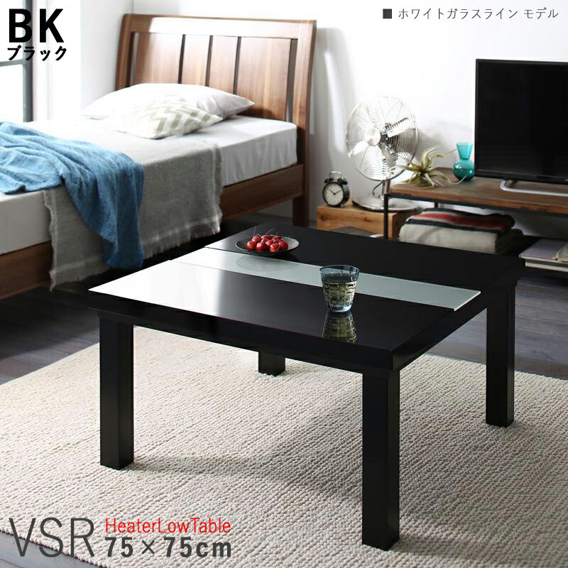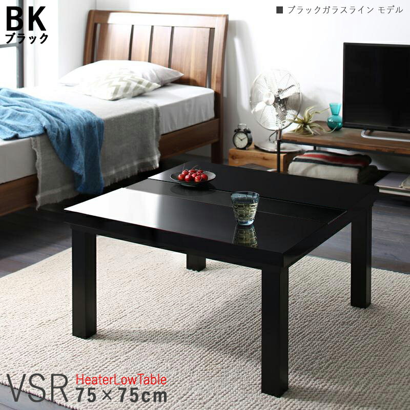 【こたつテーブル】長方形 105×75cm 鏡面 ブラックガラス モダン デザインこたつ コタツ 薄型ヒーター センターテーブル リビングテーブル オールシーズン 新生活