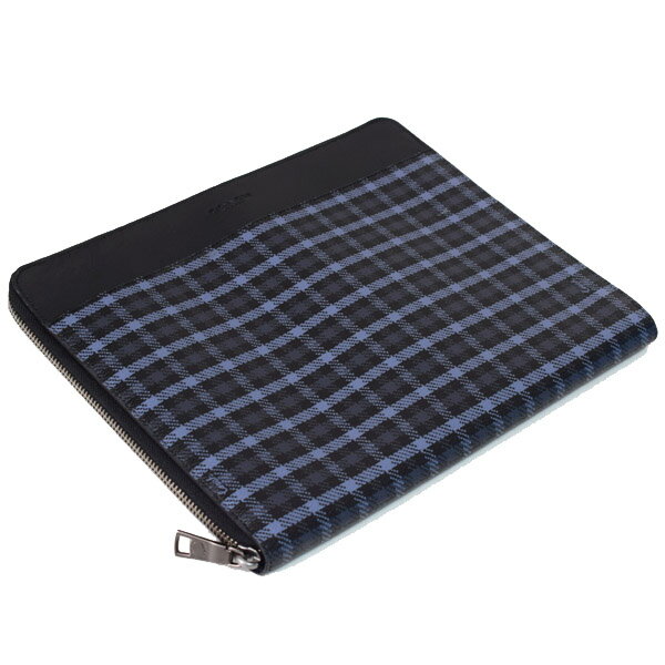 コーチ 小物 COACH メンズ コーティングキャンバス カーフレザー タイニー クラシック プレイド チェック柄 プリント タブレット iPad ノートパソコン PCケース ネイビ 87854【ブランド 新品 送料無料 誕生日 プレゼント 正規 人気 レディース 安心 保証】