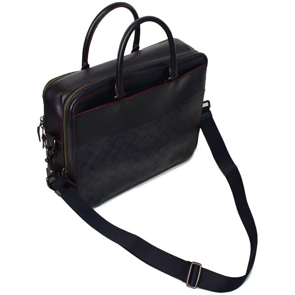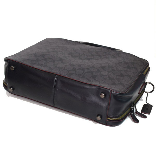 コーチ メンズバッグ COACH コーティングキャンバス カーフレザー シグネチャー ベケット デイ バッグ 2WAY ビジネス ブリーフケース ダブルジップ キャリーオン ショルダーバッグ ブラック×ブラック×オックスブラッド 79974【新品 送料無料 即日発送 代引無料 】
