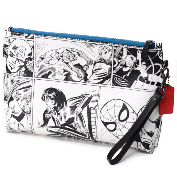 コーチ バッグ COACH メンズ コーティングキャンバス カーフレザー マーベル コラボ コミック ブック プリント キャリーオール ポーチ リストレット クラッチバッグ ブラックマルチ coach1828【ブランド 新品 送料無料 誕生日 プレゼント 正規 人気 】